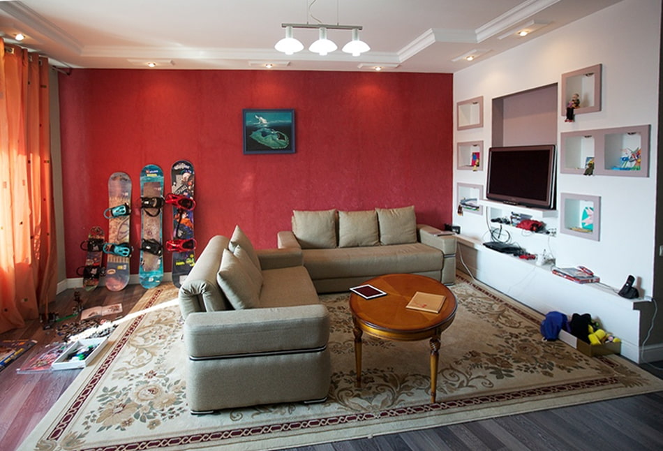 The photo below is an example of an unsuccessful arrangement of furniture, where part of the living room is reserved for watching TV, and the other for reading and communication.