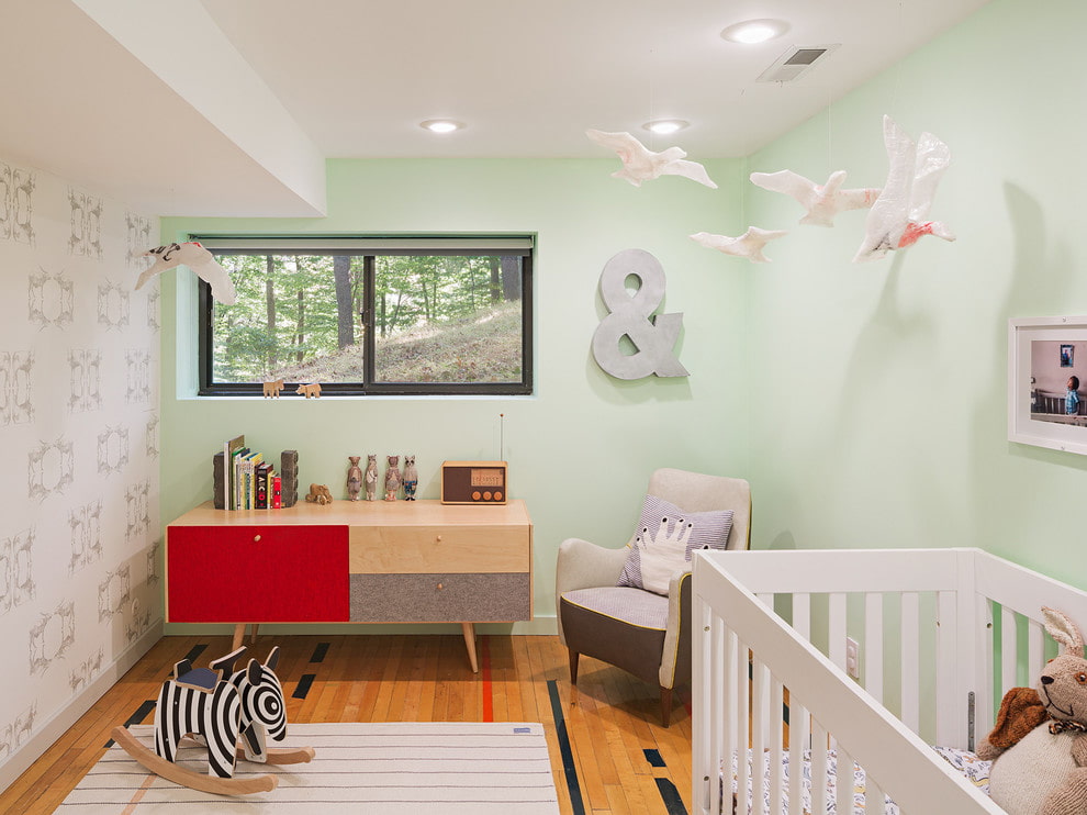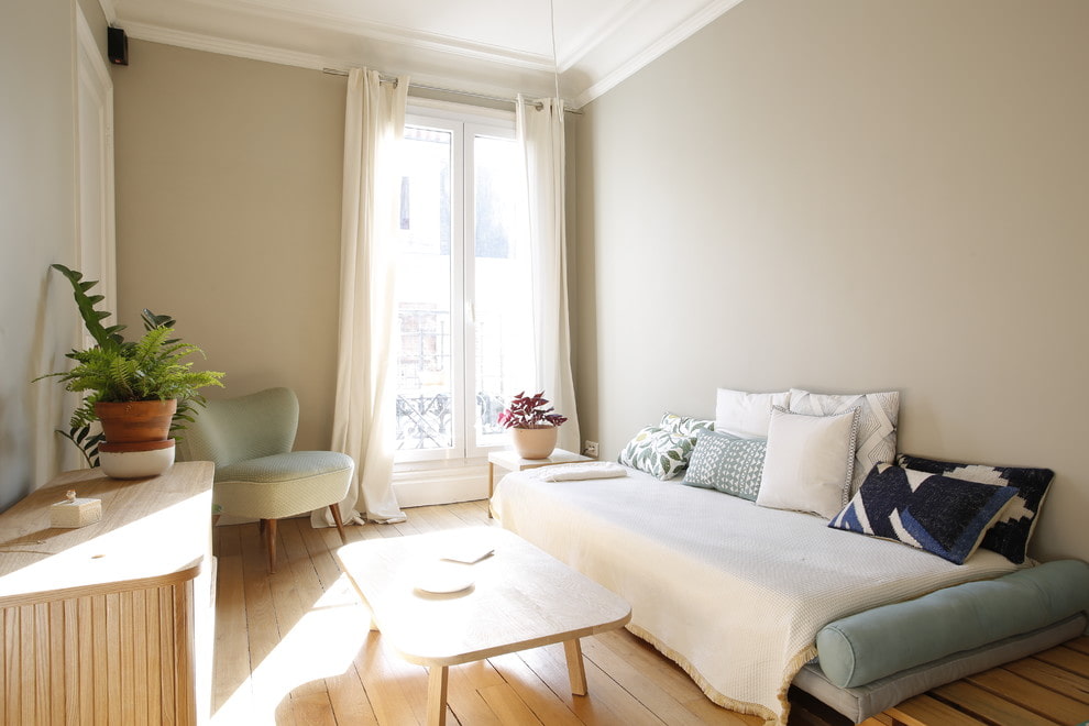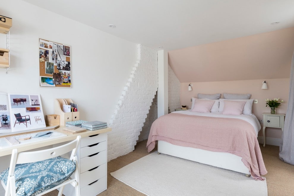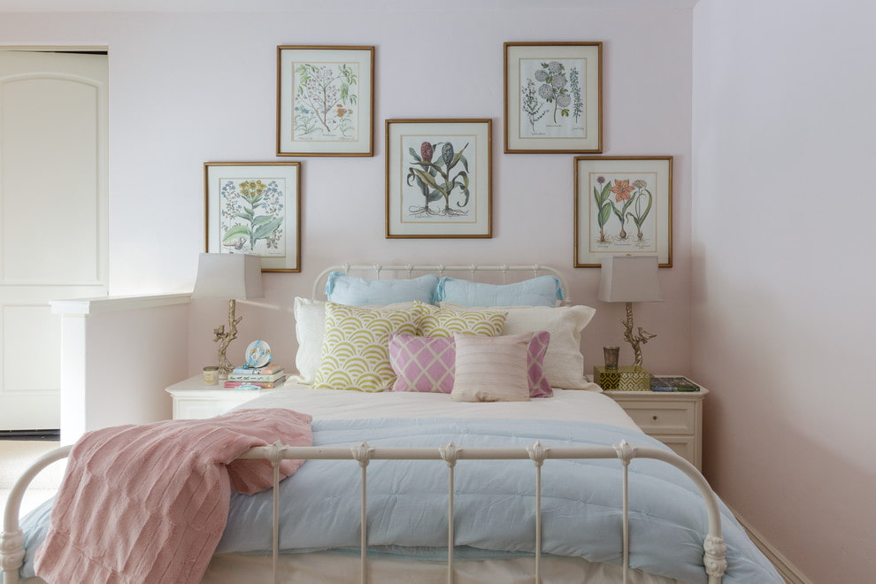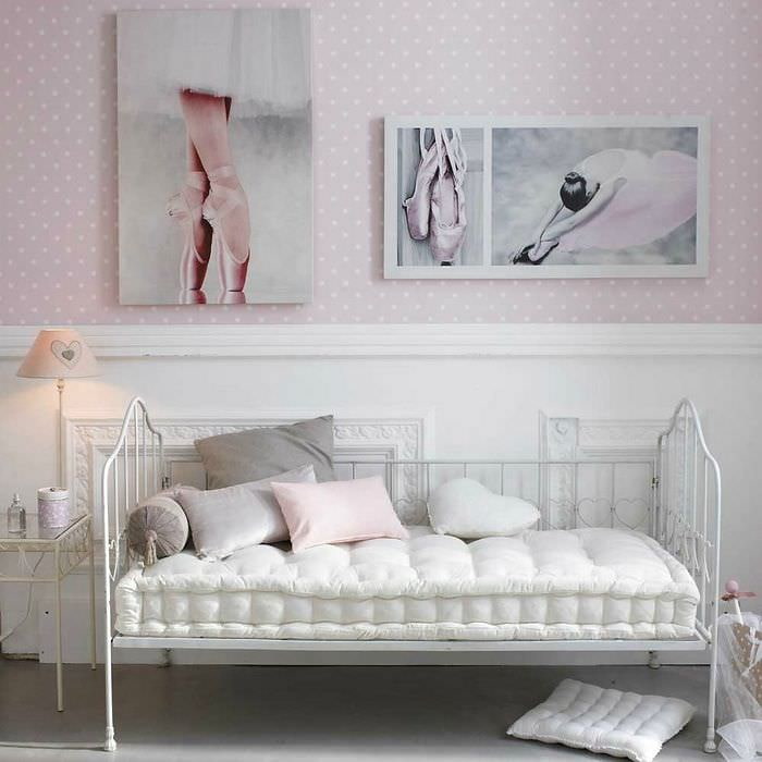In a nursery, pastel colors can function as a background, and the filling can be brighter. For a bedroom, a combination with a light, close to white, shade will be ideal; the room will be romantic and airy.