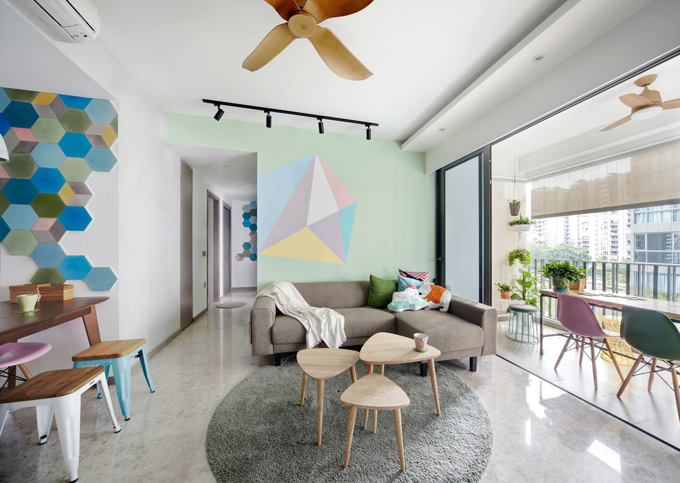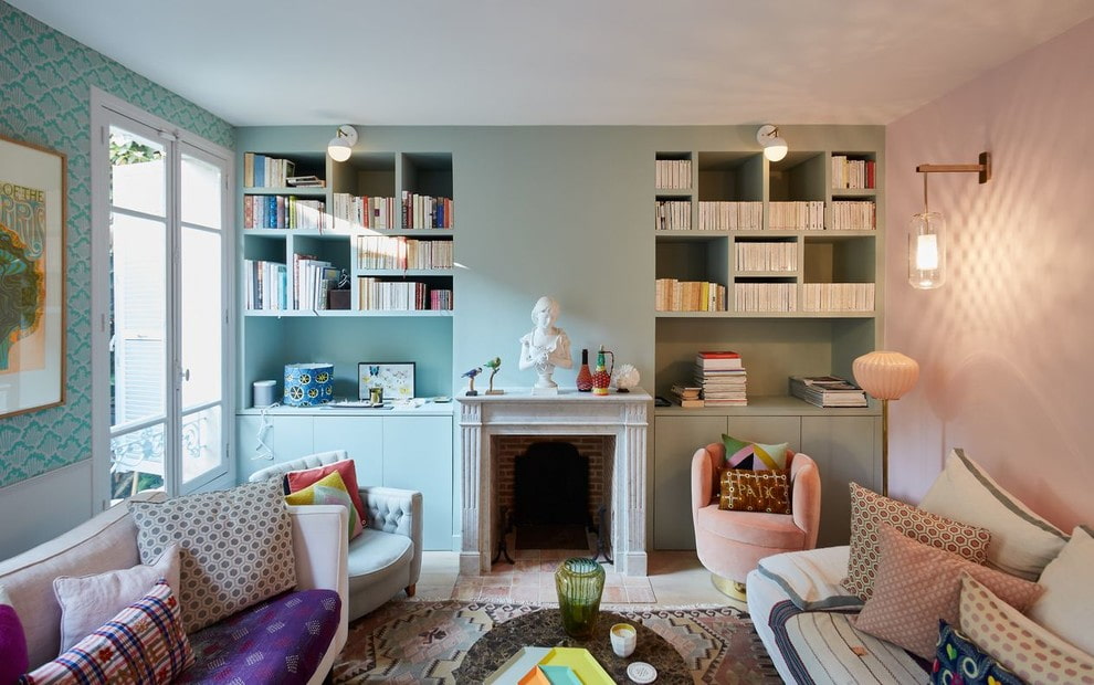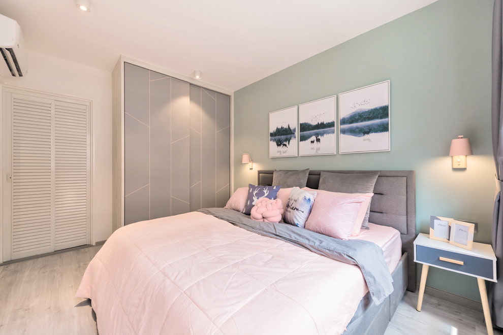Opposite shades from the color wheel are considered complimentary, for example, soft pink and blue. In the design of the apartment, this combination looks brighter and more interesting. Despite the opposite colors, the room will not be overloaded due to the soft shades.