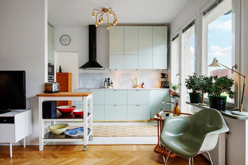 Pastel green walls not only look refreshing, but will also have a positive impact on the psychological side of a person. Mint is a suitable option for a shabby chic and Provence style interior, green shades will look warmer.