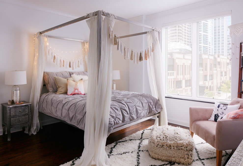 The textile part of the decoration makes the interior cozy.Pillows, rugs and carpets are details that can change the mood of the house somewhat, making it playful, for example, with a floral pattern on a pink background or romantic with a solid lavender accents.