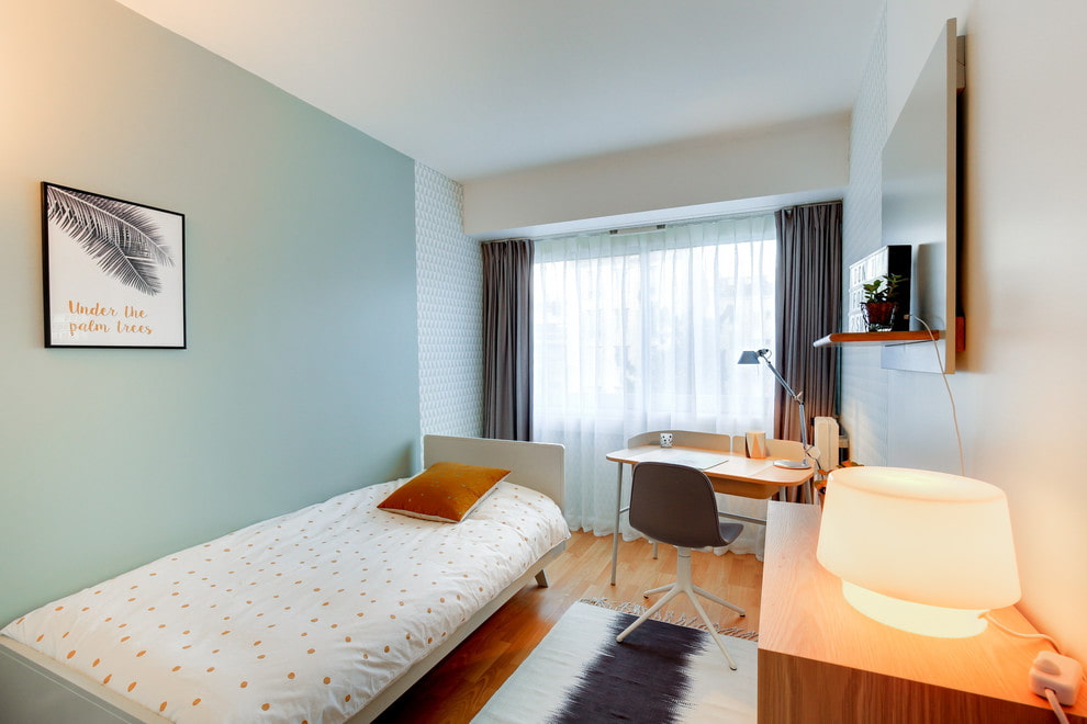 Positive sunny unobtrusive pastel tone. The interior will look harmoniously with neutral base colors such as white and beige. Pale yellow wallpaper will brighten the room, the windows of which face the north side.