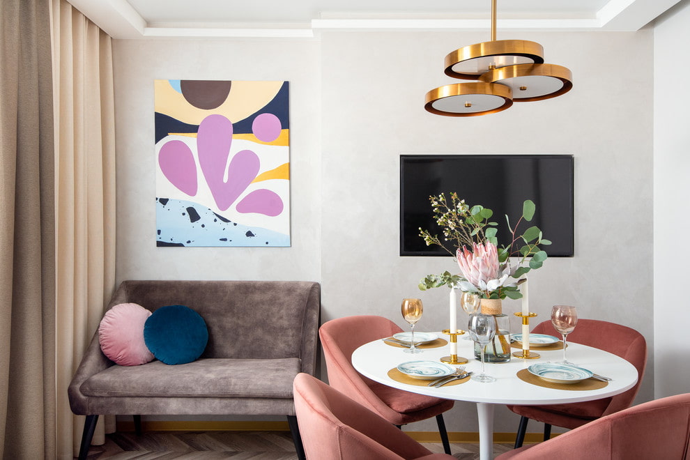 If the kitchen is tiny, and the rearrangement in the living room has freed up a few useful meters, it is worth organizing a dining room in the living room. An unconventional approach can appeal to all household members and bring new experiences to life.