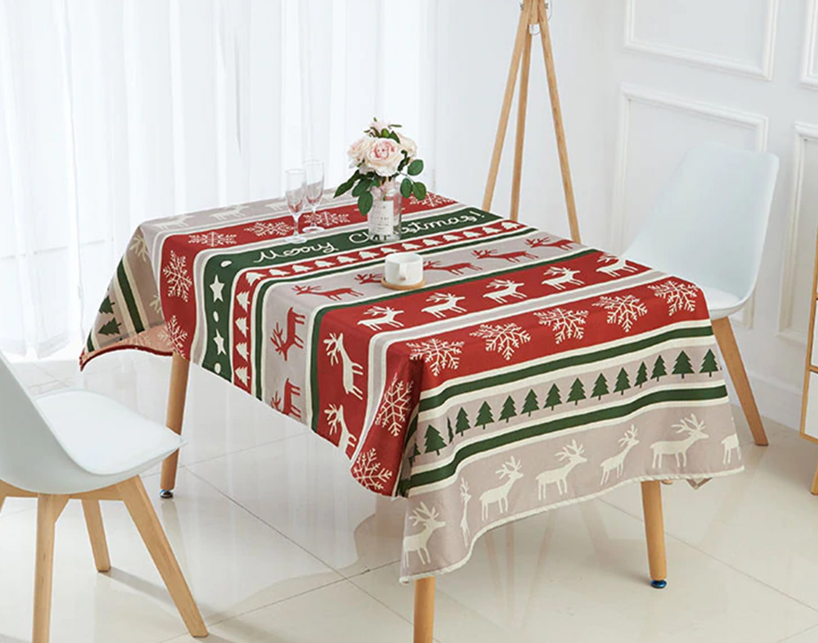 If you need a full New Year's tablecloth that will protect the table from spilled drinks and fallen food pieces, choose a waterproof product made from linen and synthetic additives. The size of this tablecloth ranges from the smallest (32x45 cm) to the largest (140x240).