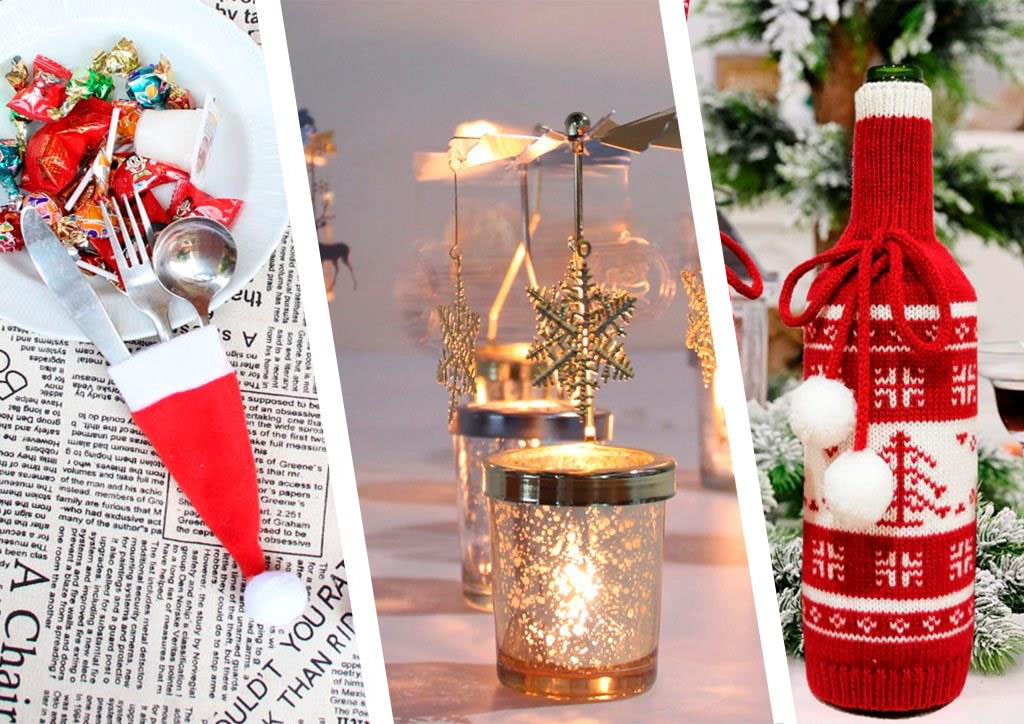 Another fun way to add a festive mood is to put your fork, spoon and knife in a special cap. The elegant set will definitely appeal to everyone around you, including children.