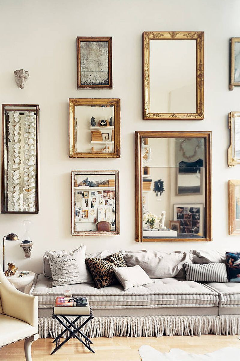 On straight models, a symmetrical arrangement looks appropriate: take 2-3 pairs of different colors, place in a mirror. The center is left empty or the only one that differs from the rest is put.