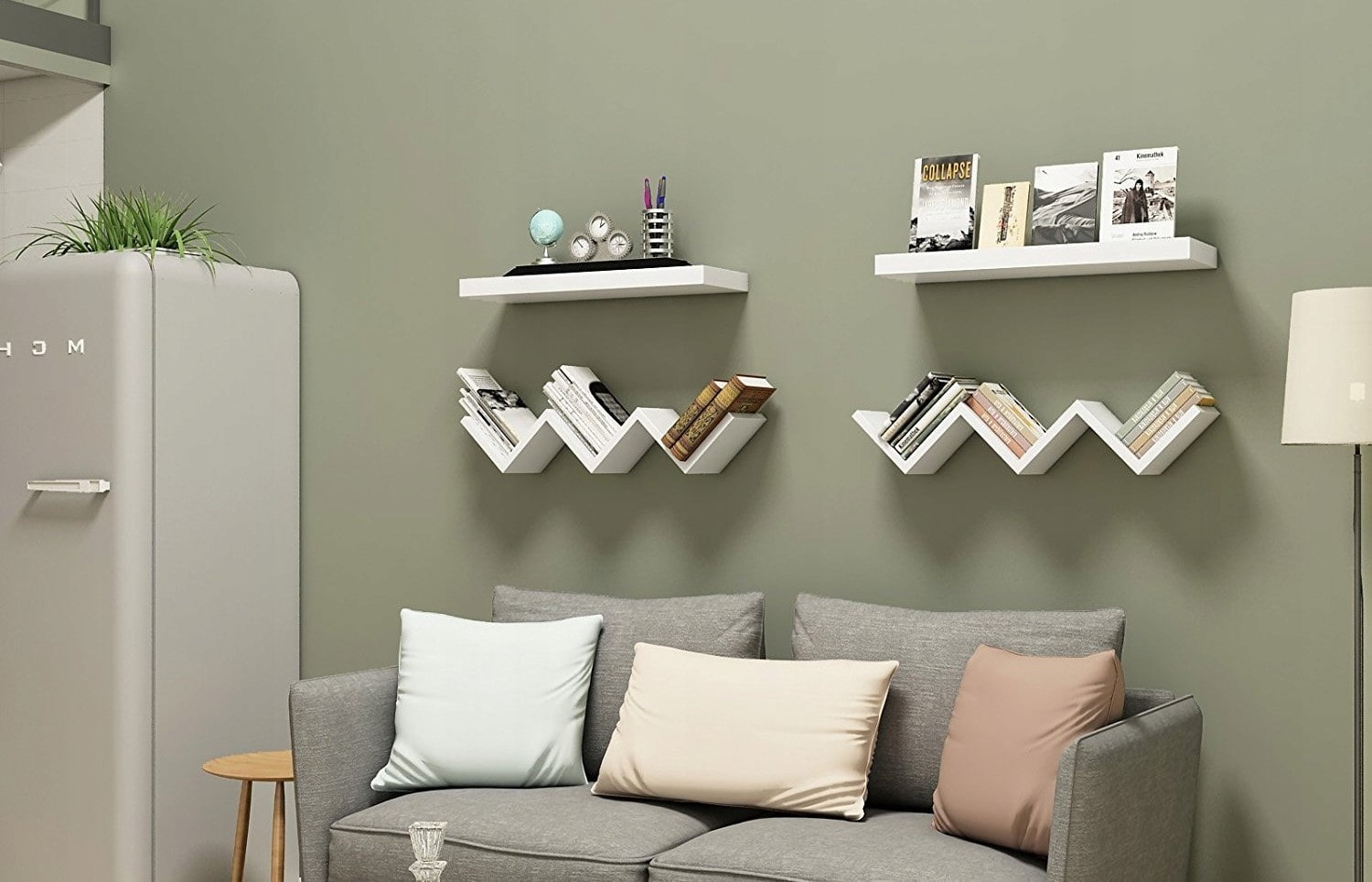A very specific decoration of the room will be a model in the form of a human cardiogram. Unique shelving design ideas can give a stylish and presentable look to the furnishings.