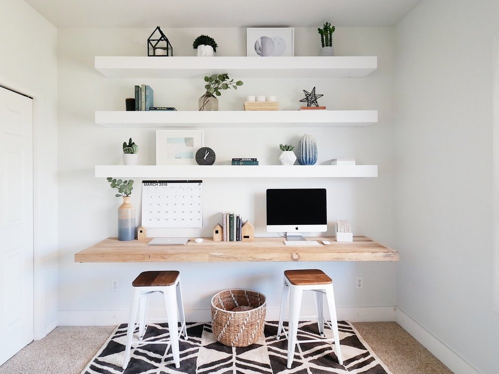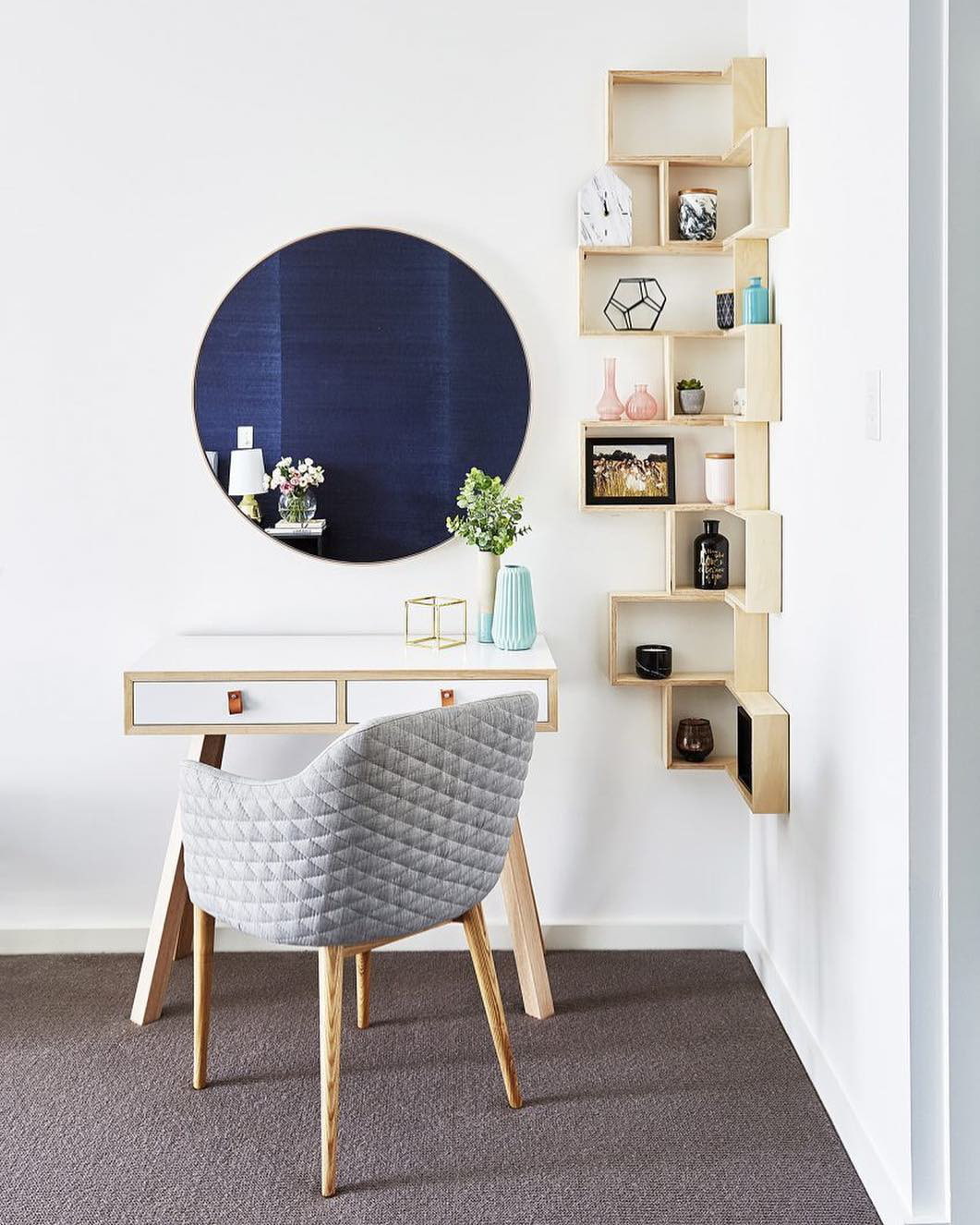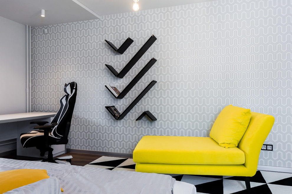 An excellent solution is to place all-wall shelves above a desk or computer desk. Thus, it will be possible to achieve the systematization of things and their most convenient storage at hand. In addition, due to such a spectacular design technique, the furnishings will look stylish and acquire a creative spirit.