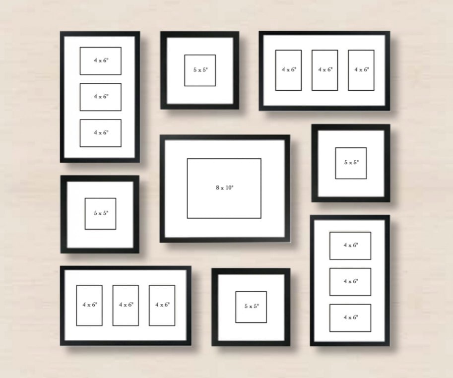 When choosing dimensions, be guided by the place where the placement is supposed to be. The easiest way is to choose an add-on on the wall above the bed or a sofa in the interior of the living room: the area of the frame should be at least half the width of the back (one large poster) or at least ⅔ (2-4 posters).