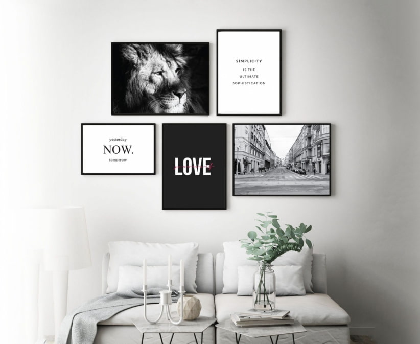 The first thing to do is choose a palette according to your personal preferences: do you like color or black and white posters? The latter are more suitable for the same achromatic designs. When deciding on color pictures, follow one of the proven models: