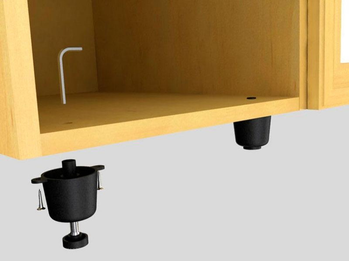 The legs of large furniture should be adjustable. Wardrobes and kitchen cabinets with conventional supports can be crooked: uneven floors can be a real problem. Supports that can be adjusted will avoid this.