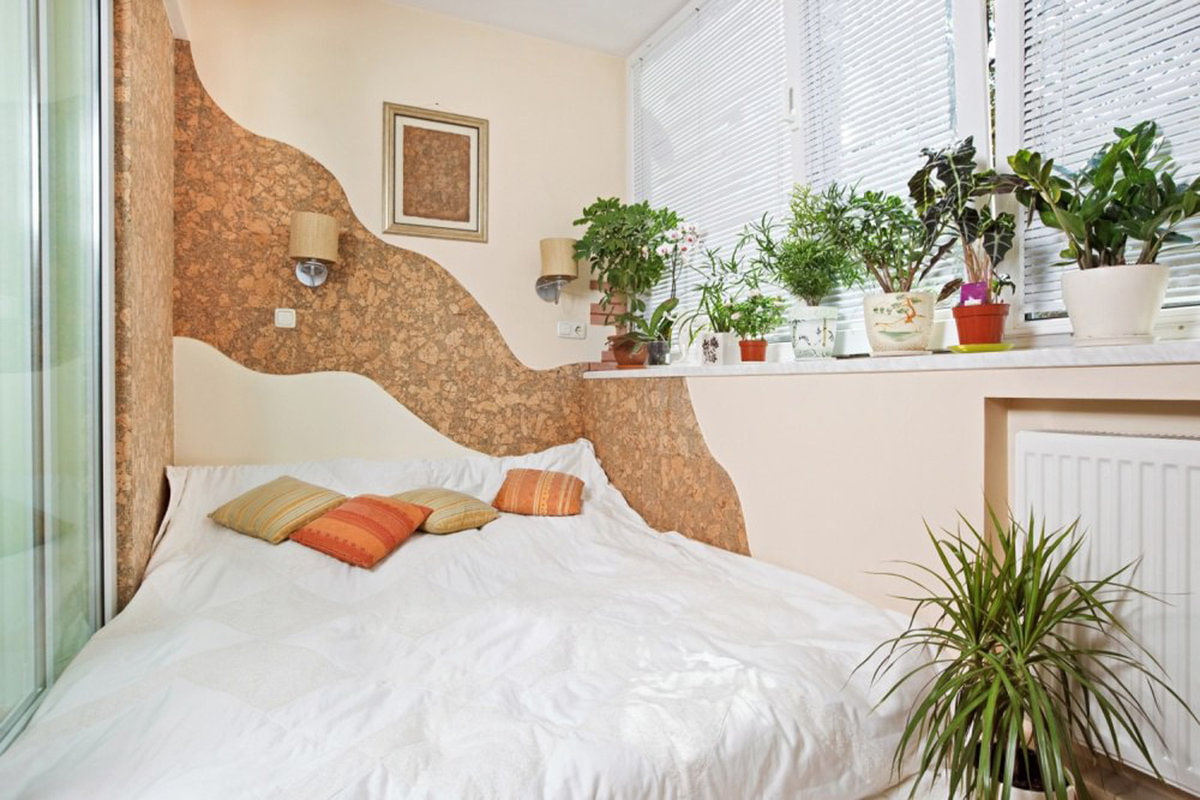 A good choice of material for the balcony and loggia. Cork wallpapers are not afraid of bright light and high humidity, in addition, they will get rid of street noise. Coloring allows you to decorate the interior in a light or dark palette. The finish can be combined with other materials such as liquid wallpaper or wood paneling.
