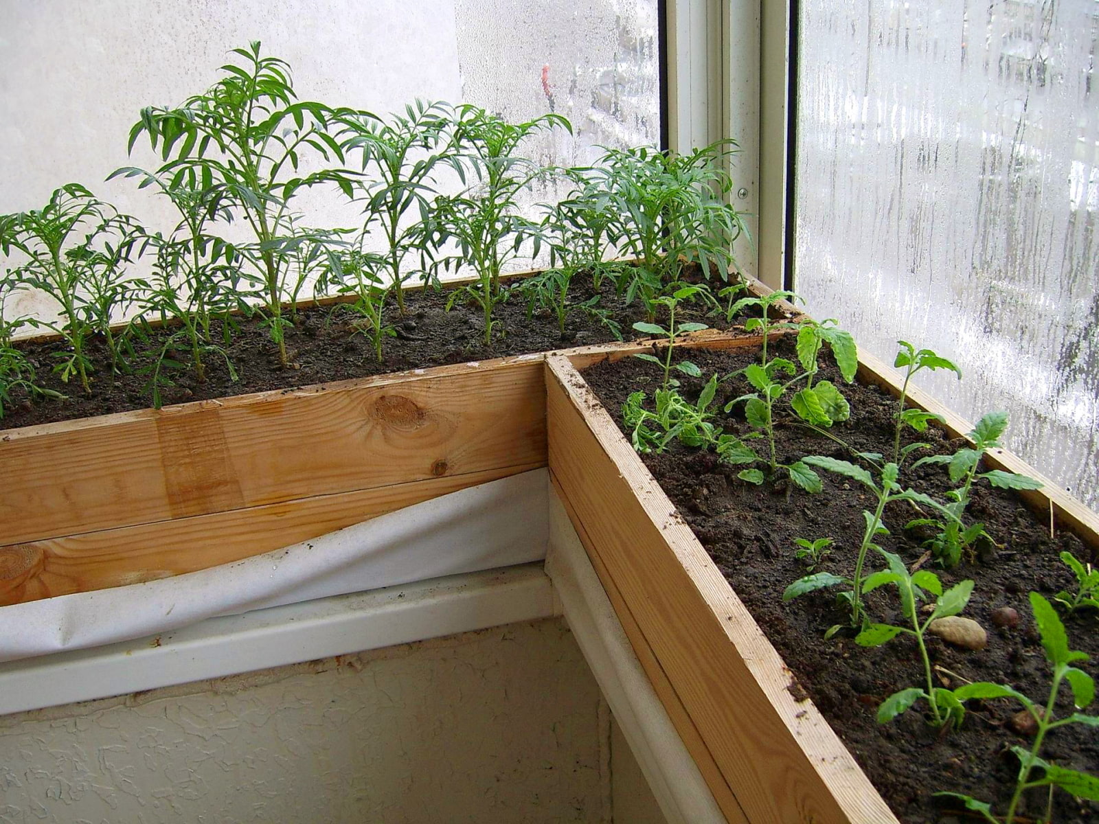 Wooden boxes for seedlings can be put together with your own hands, using boards and waterproof material to protect the windowsill from moisture. For freestanding containers, plastic trays or pallets are provided.