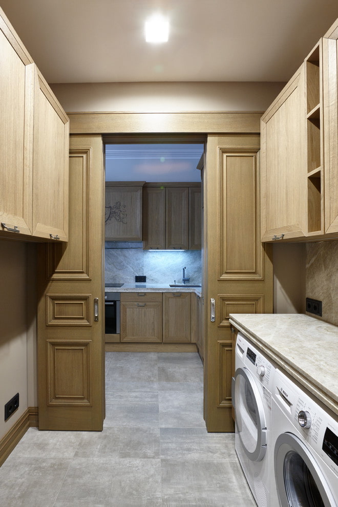 The storage room, due to the competent design, turns into a harmonious continuation of the overall interior space.In this case, these door leaves are the ideal option to save space, free up space and avoid clutter.