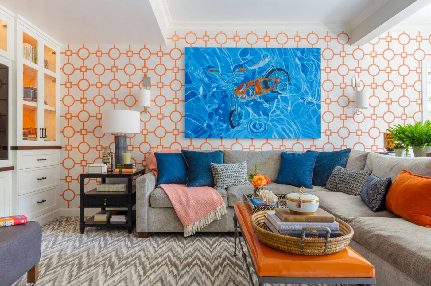 - Retro - bright, rich colors, geometric patterns, minimalistic furniture of unusual shapes.