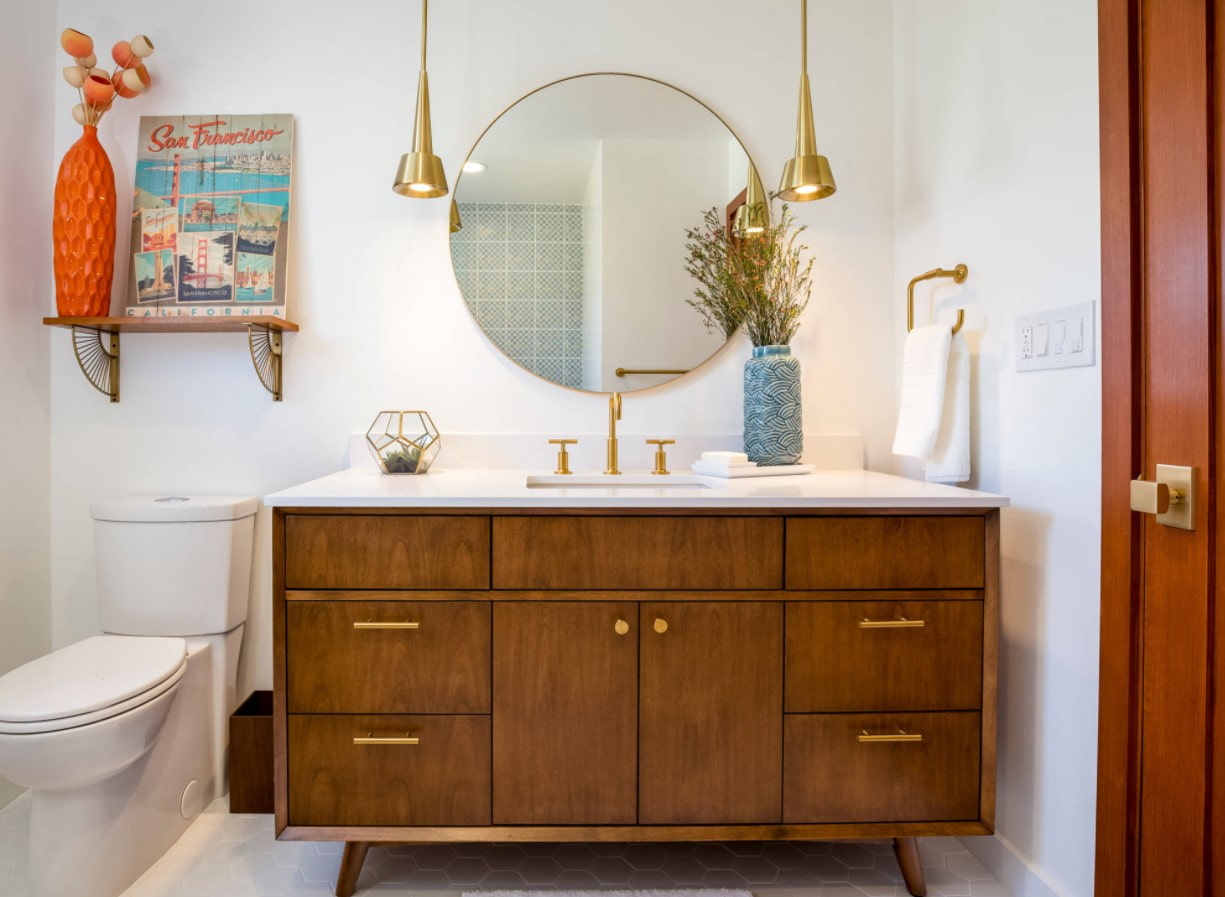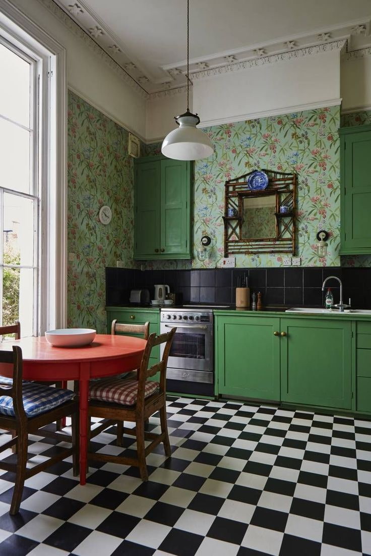 When looking for ideas for decorating a retro kitchen or bathroom, you will surely come across a photo of a checkerboard floor, where dark tiles alternate with light ones. This trick is a classic retro finish.