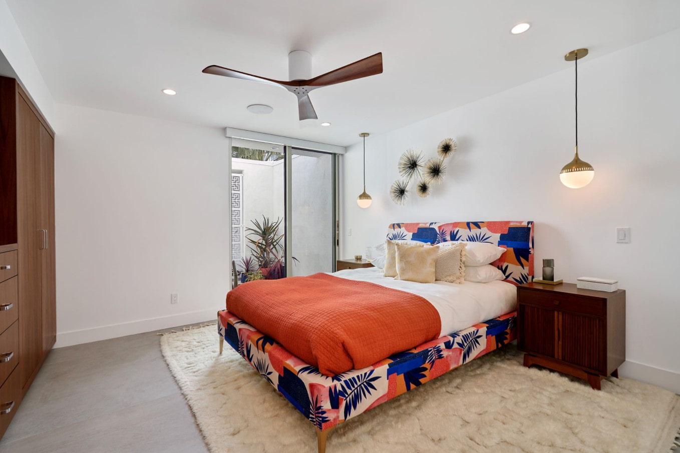 The slogan "Make love, not war!" and the hippie movement itself made its own adjustments to the already vibrant interiors of the 50s. In the interior design, unusual floral and geometric prints have appeared, complementing the color tones in the decoration.