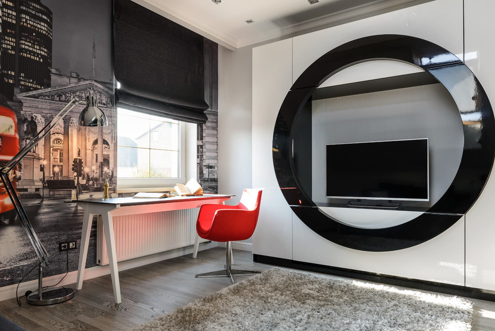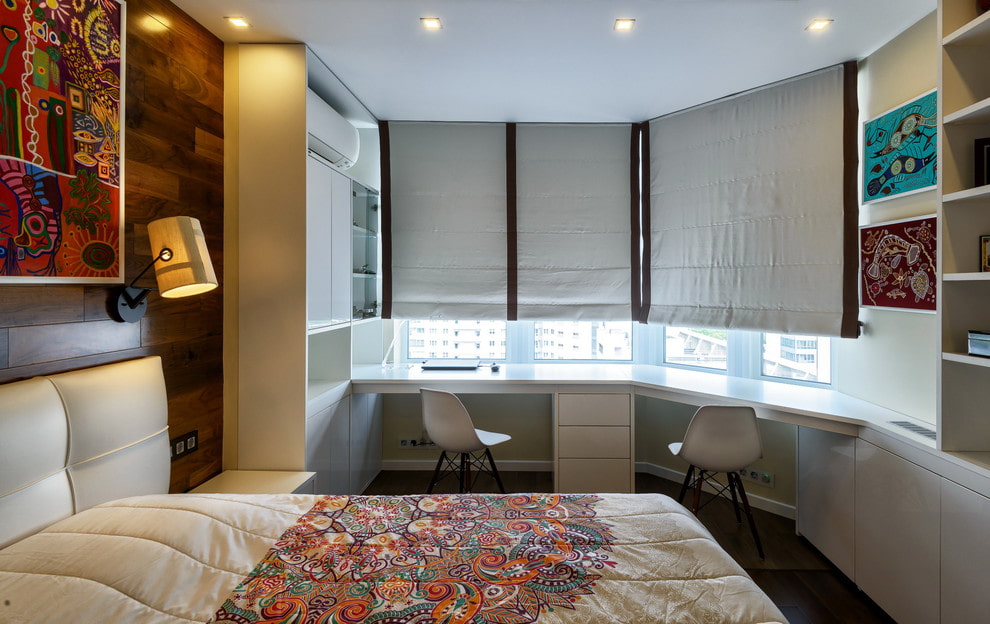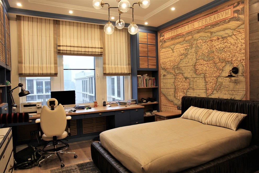 Bright photocurtains decorate the window space and add sophistication and originality to the atmosphere.