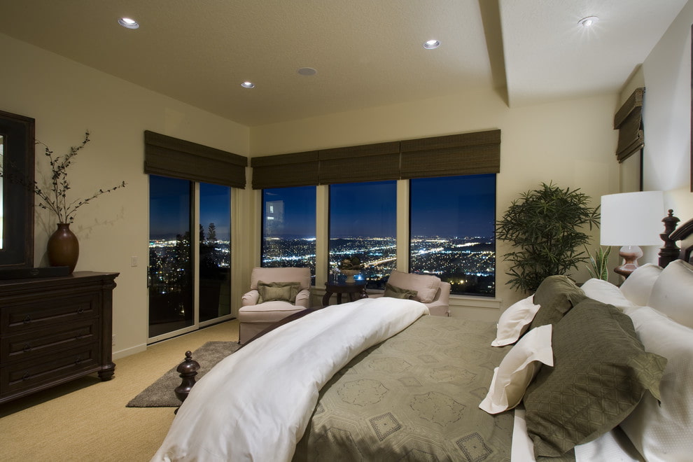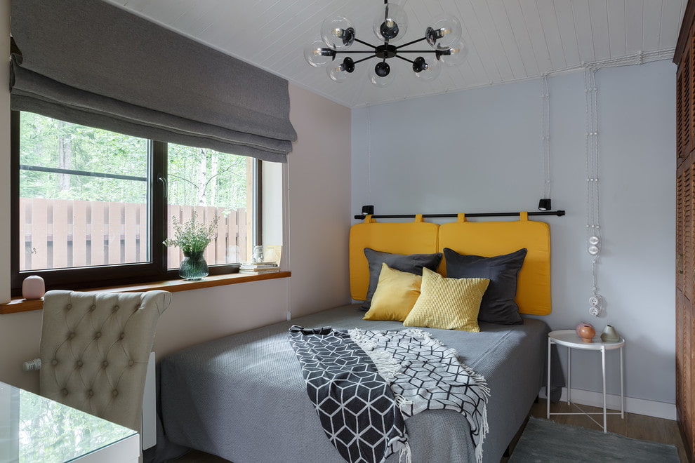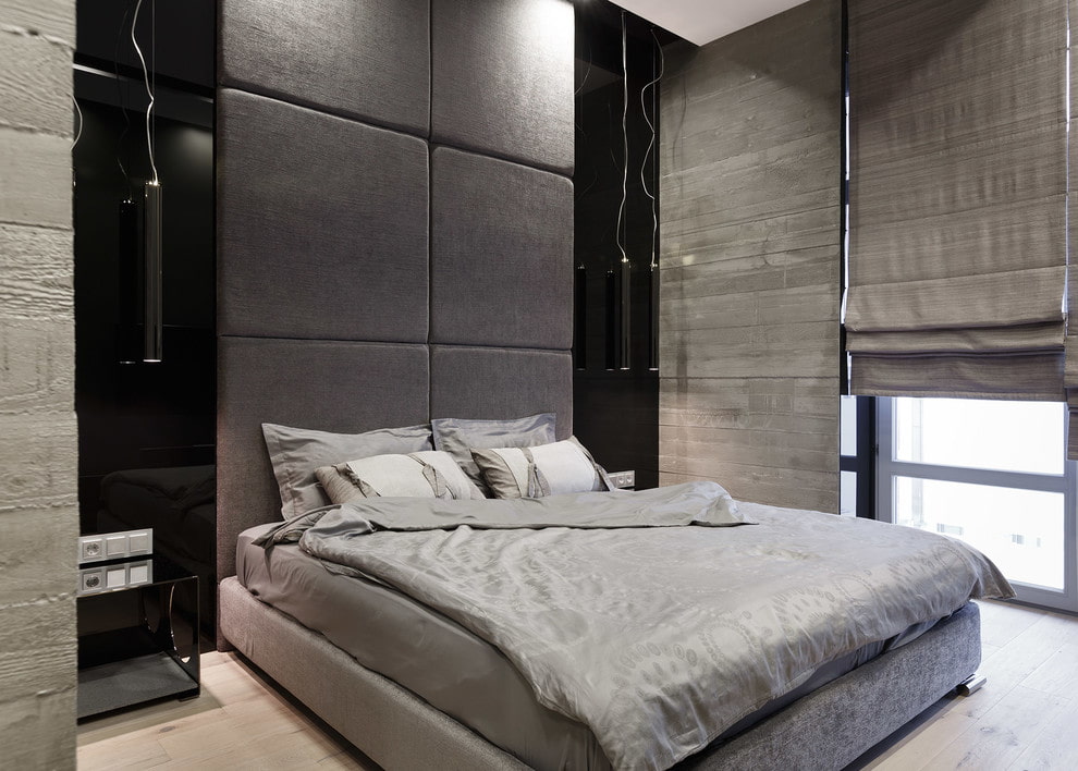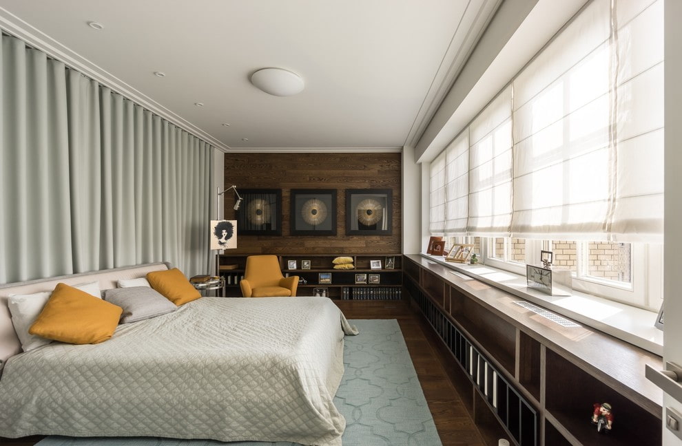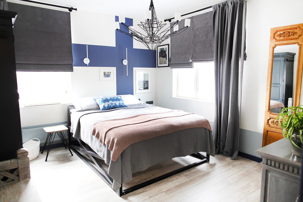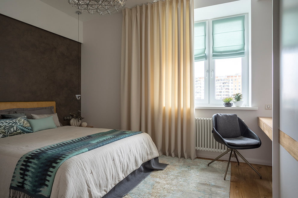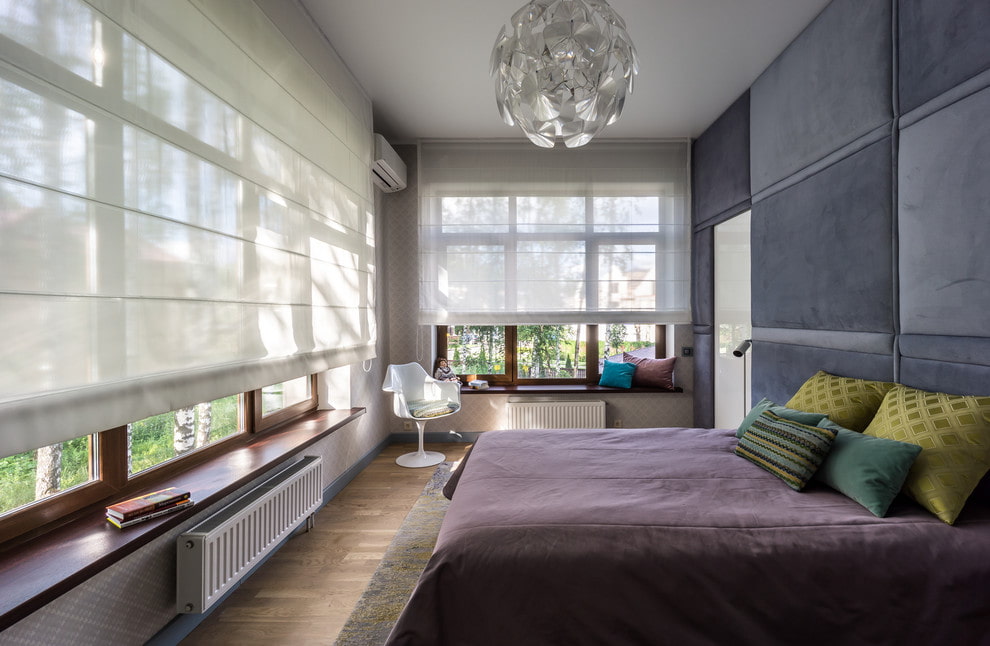 Roman curtains will make the interior of the bedroom more expressive and interesting. Solid or patterned models look very impressive.