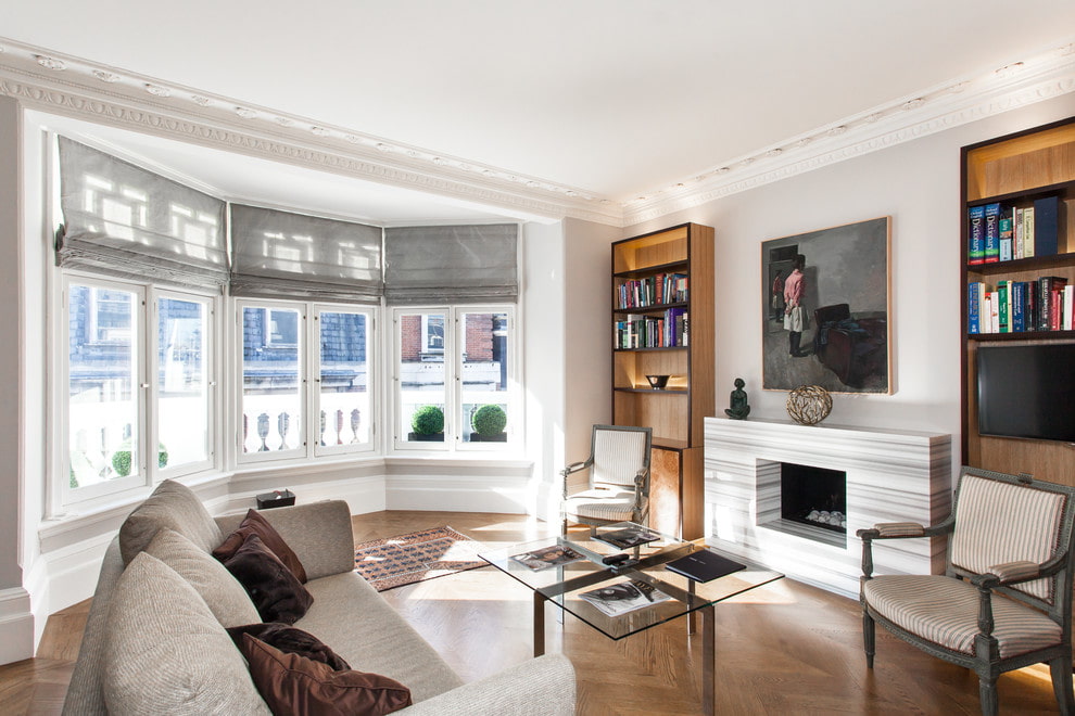 A versatile and functional option for decorating a bay window. Laconic designs, go well with almost any shape of the bay window ledge.