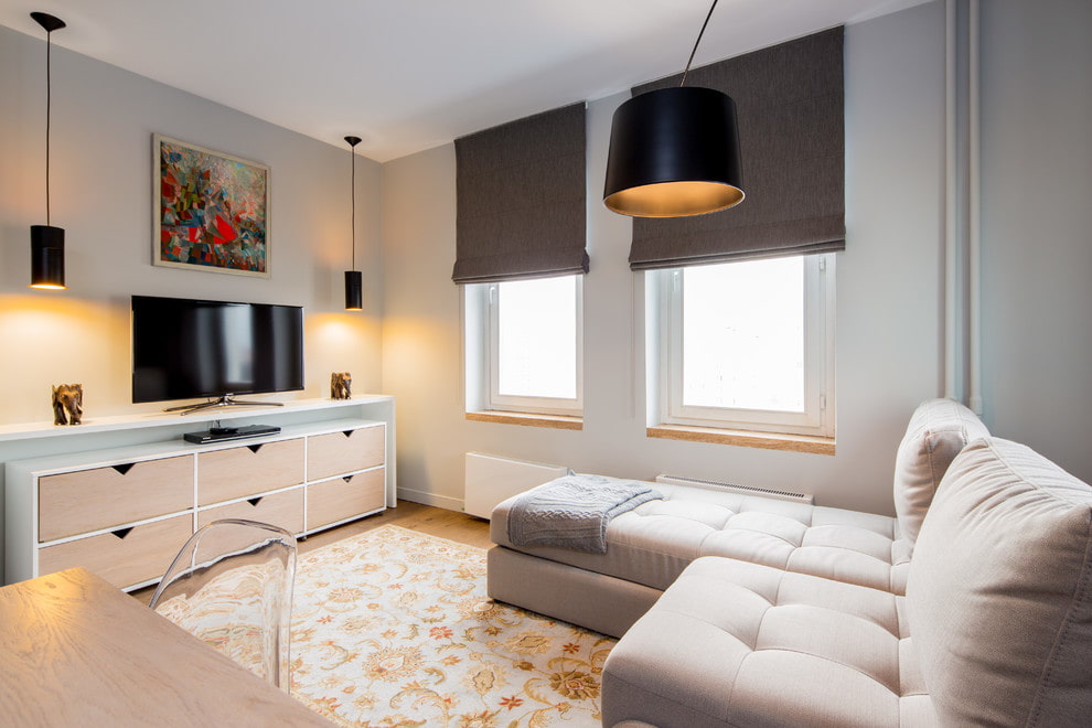 These curtains work well in a modern style. Thanks to their functionality and impeccable appearance, they perfectly emphasize the fashionable and stylish design.
