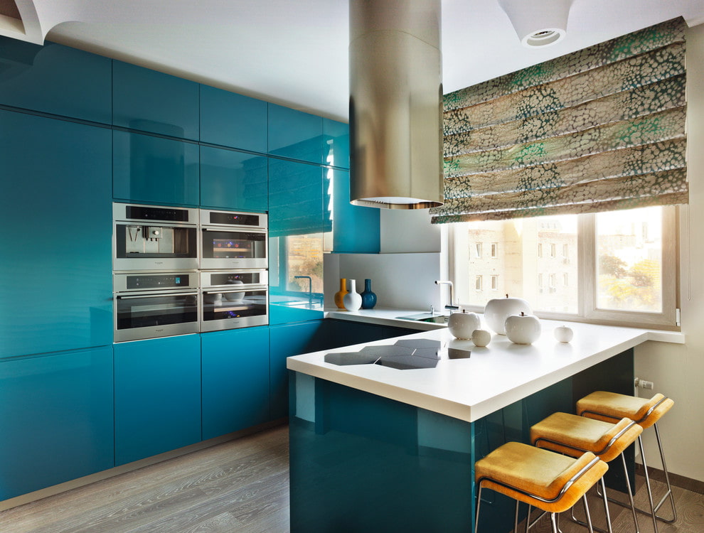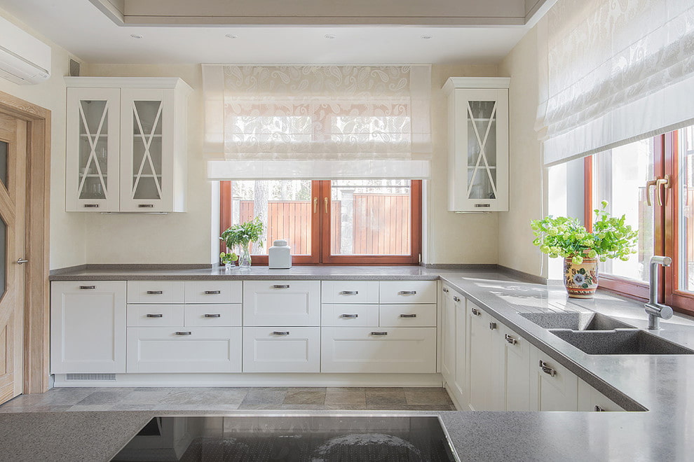 Roman blinds will become a very stylish and elegant element of the kitchen and will create a homely atmosphere in it.