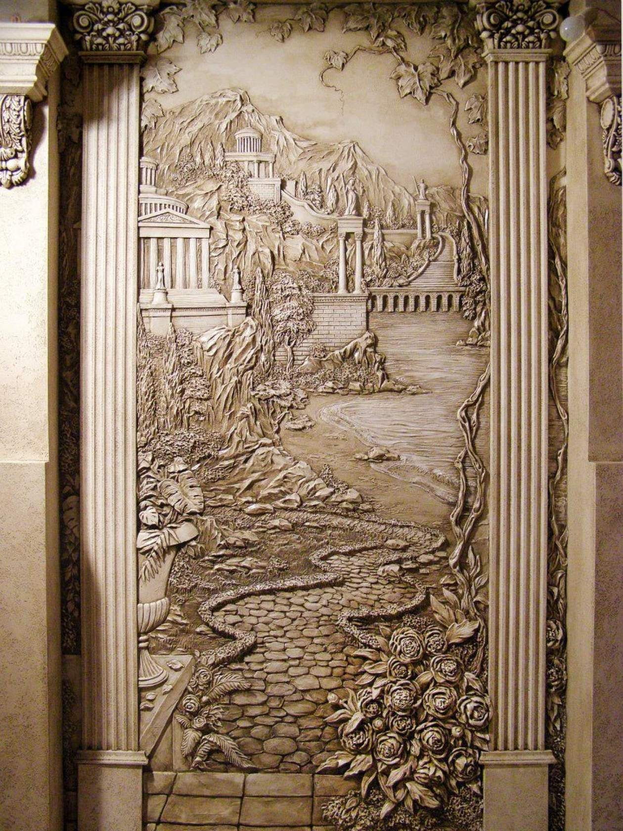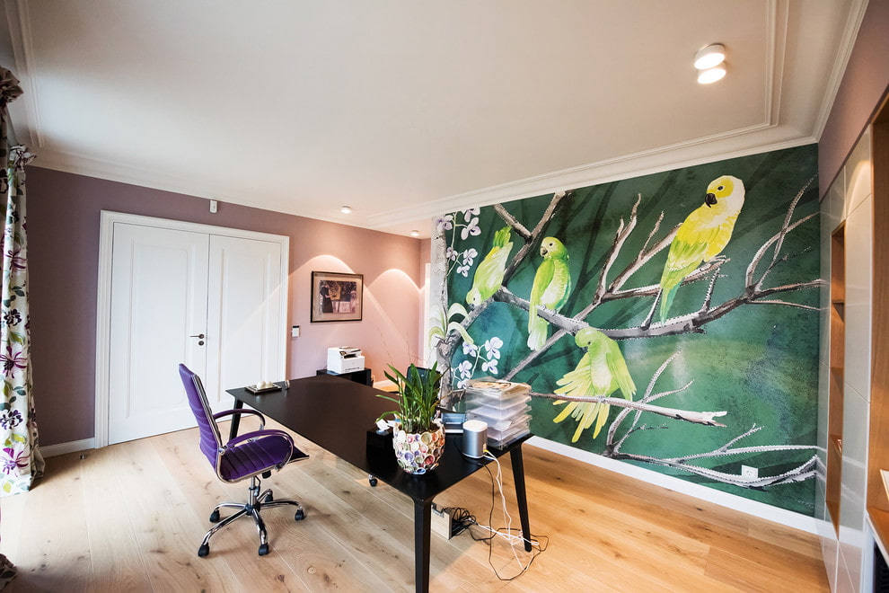 - Embossed decor... The image is applied in several layers and seems to come out of the wall, this adds volume to the whole room. Landscapes and animals in this technique seem absolutely realistic.