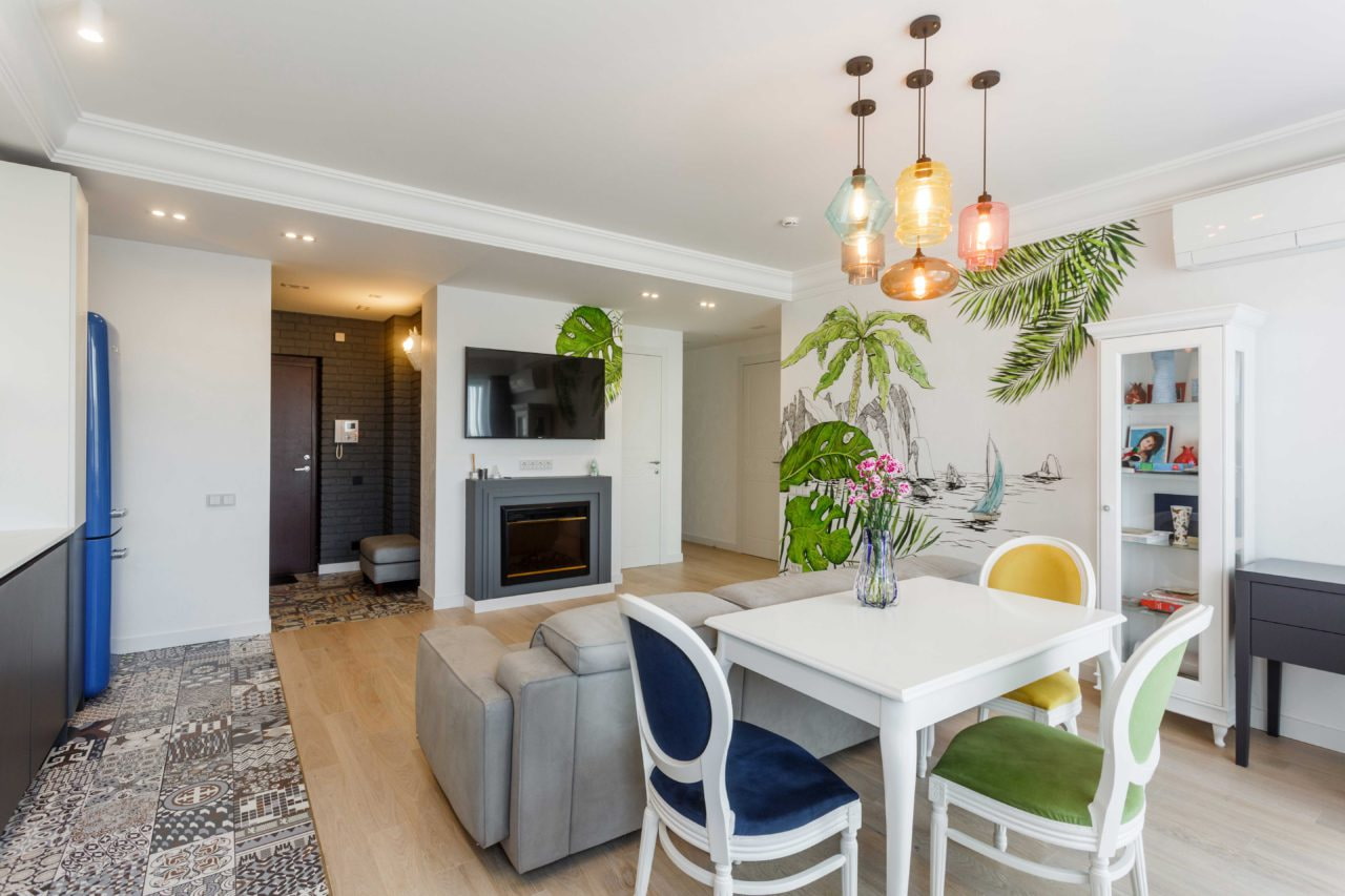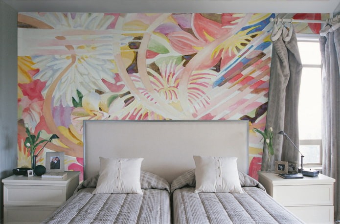 Thanks to the wide possibilities of tinting, such wall painting in the interior can look completely different: from pastel landscapes resembling frescoes to acid graffiti.