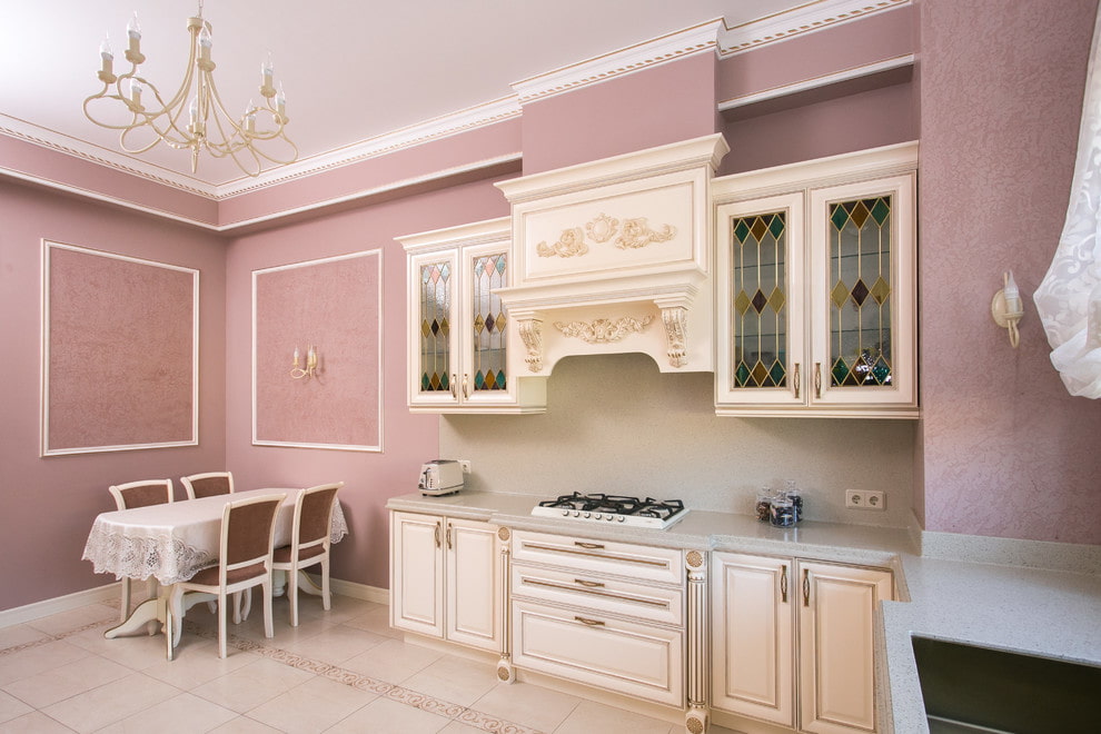 Pink wall decor in the kitchen is a delicious solution. Be careful - pink improves mood and increases appetite.
