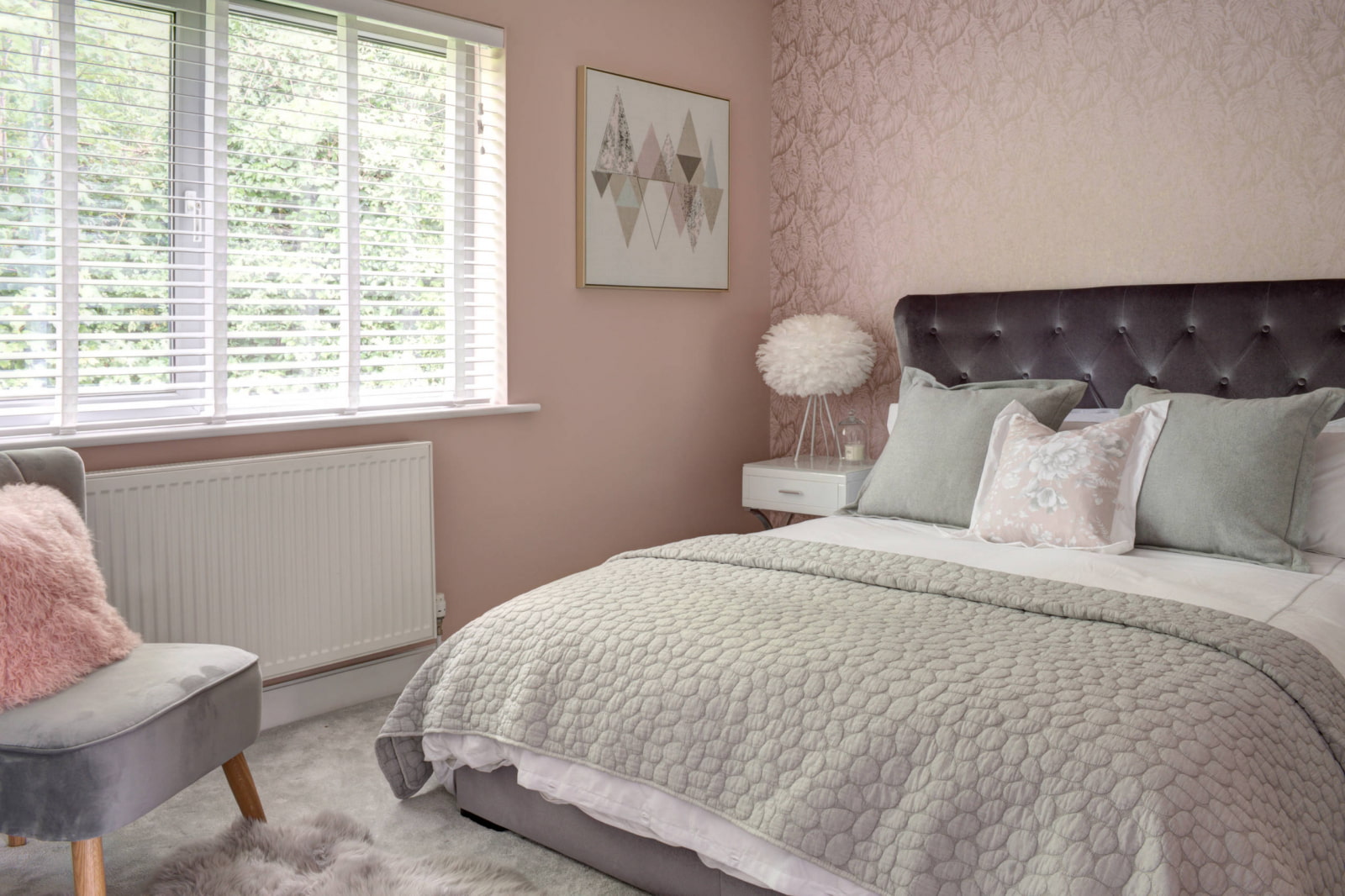 A muted, soft powdery shade of pink is perfect for the bedroom. Can be used in any style, including the harsh Nordic. This color brings freshness and warmth.