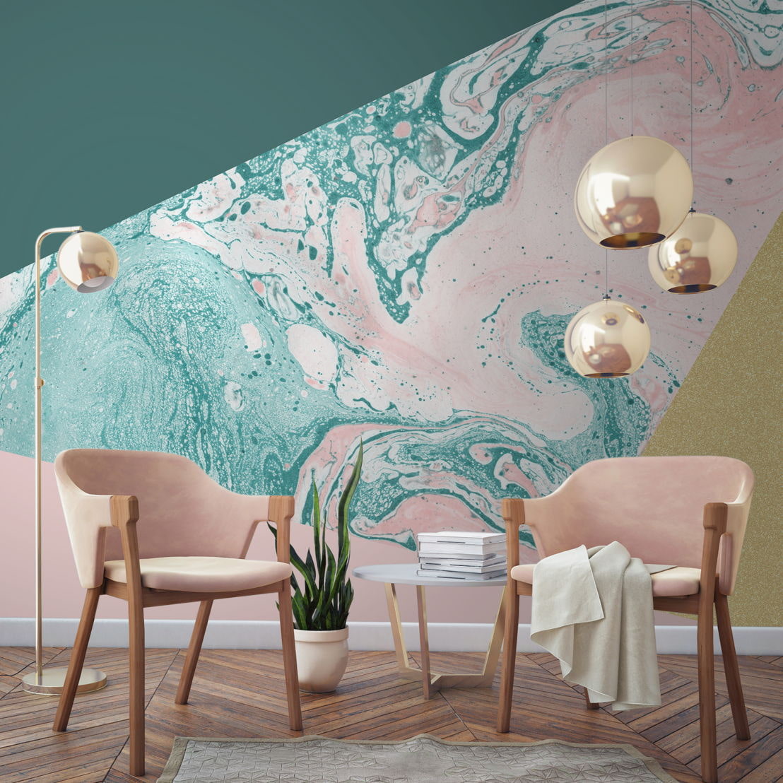 A combination of pink and mint tones is suitable for a modern interior.