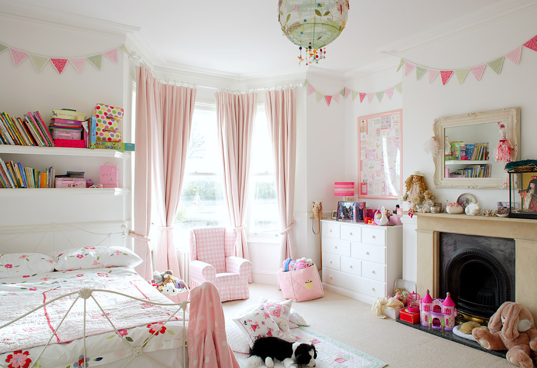 In the photo there is a room for a girl made using various shades of pink.