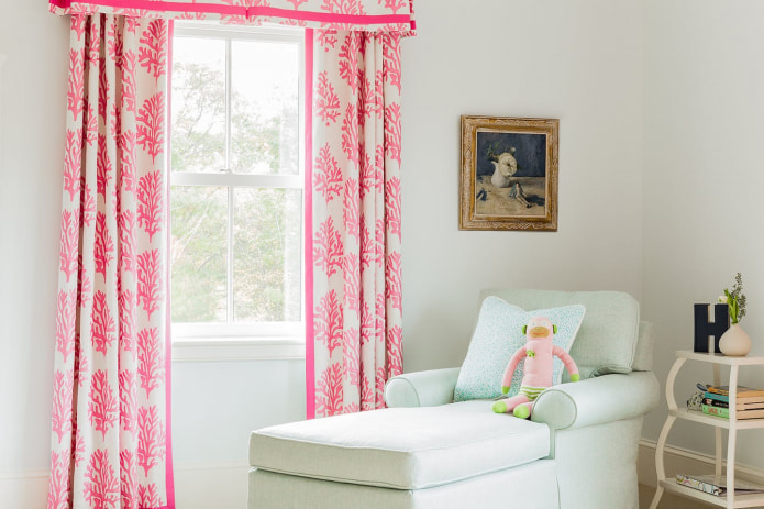 - Too bright pink curtains can look very harsh and tire your eyes.