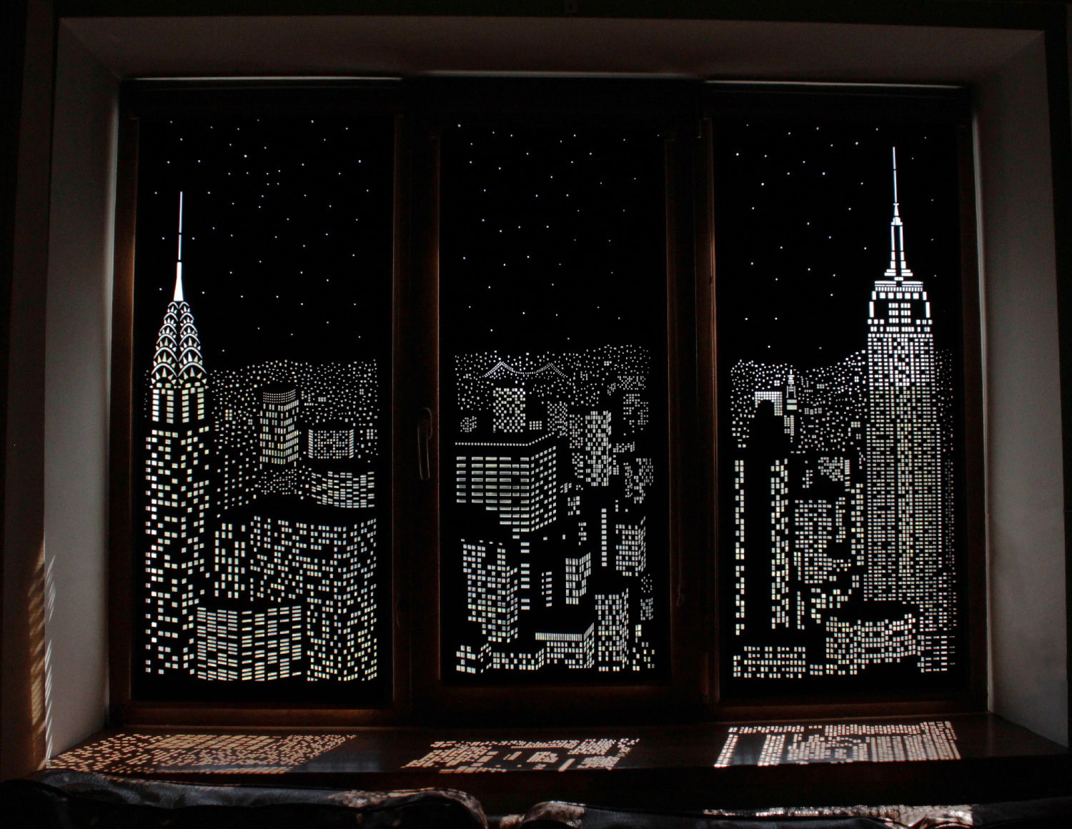 Realistic prints with night cities look just amazing, they allow you to change the view outside the window in a few seconds and find yourself in different parts of the planet.
