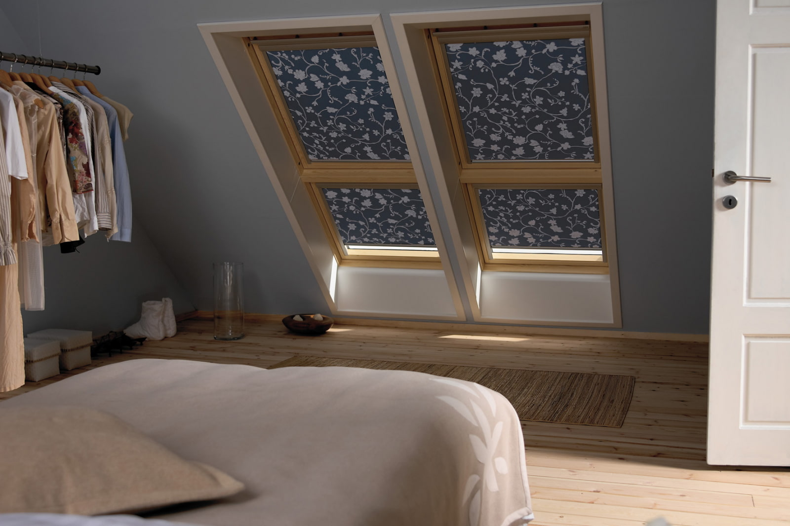 Roller blinds are securely fixed to the frame and allow correct dosing of the light flux in the attic.