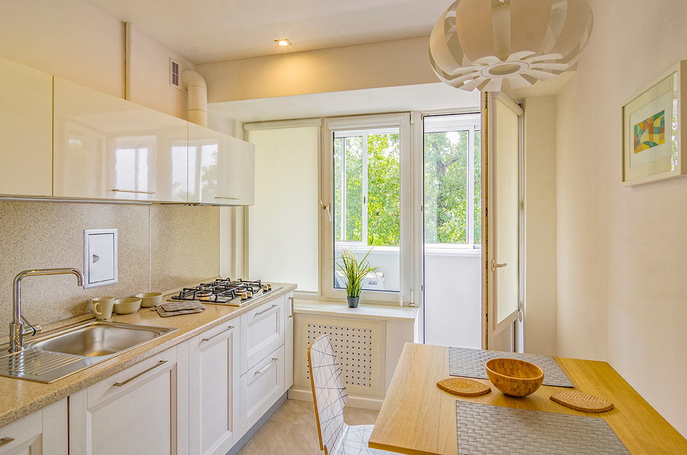 Ergonomic models perfectly match this room. A wide selection of textures and colors of models allows you to choose the right option for any kitchen.