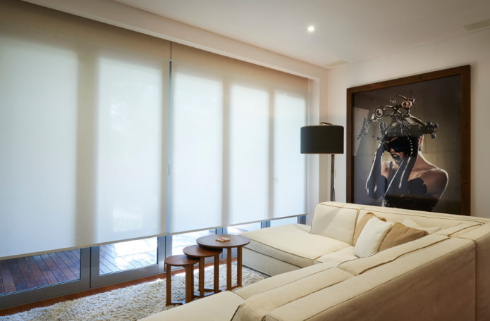 The choice of roller blinds depends entirely on the main style of the living room. Various stylish models fit perfectly into the interior and make it cozy and very fashionable.