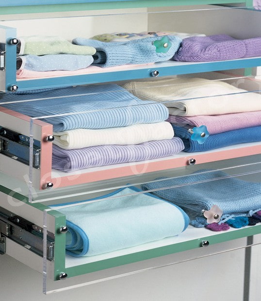 The indisputable benefit of boxes is that they allow you to easily inspect all the contents. They are more ergonomic than shelves and ideal for small items - underwear, socks, gloves. The most convenient modern drawers have a transparent front wall, but are expensive.