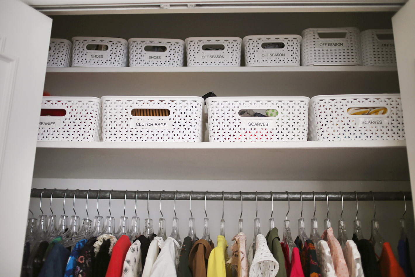 Another great way to save space in your closet and free up more accessible shelves is to vacuum pack seasonal items. They will reliably protect clothes from dust and insects and will triple the cabinet's capacity.