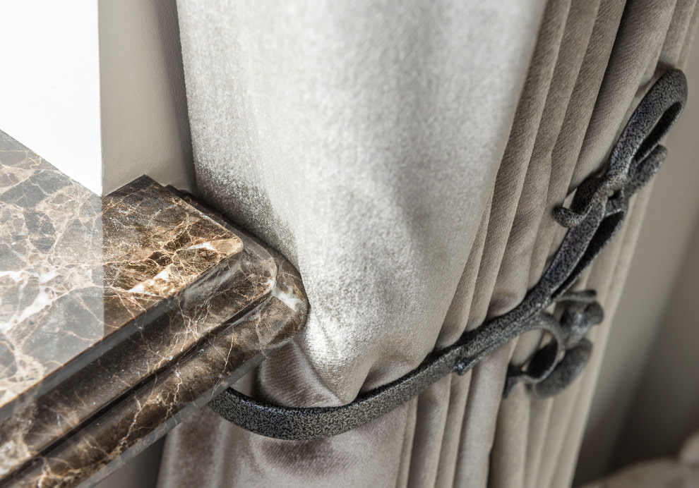 Holders are attached to the wall and hold the falling fabric.The shape and material can be very different. A copper or gold holder is suitable for a soft interior, metal ones are combined with colder paints.