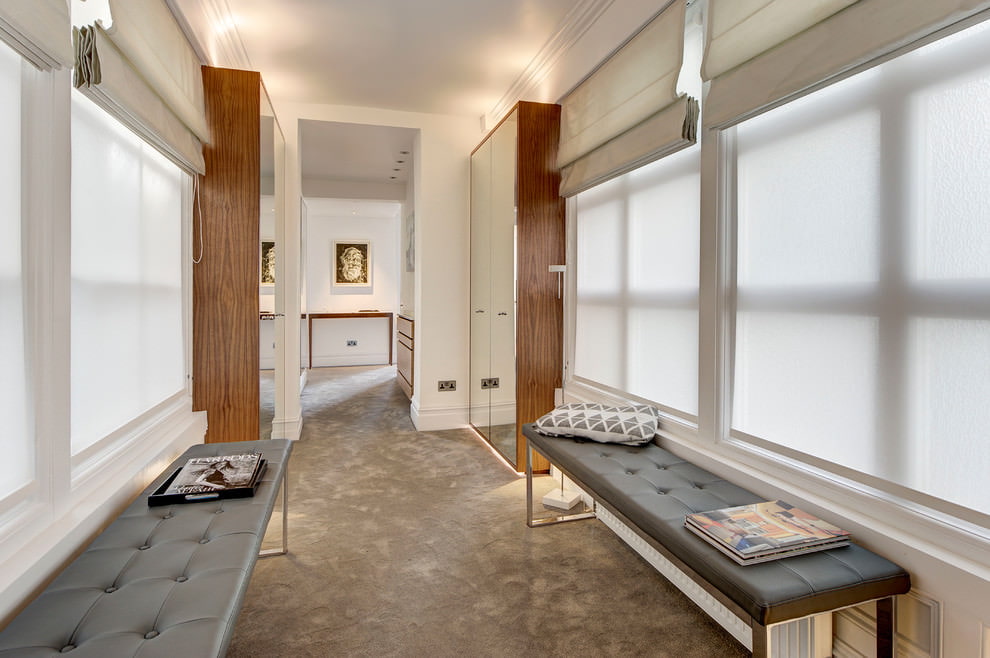 A Roman blind visually resembles a roller blind, but with a more complex mechanism. Represents the fabric divided into segments and stitched together. Along the entire length, with equal periodicity, horizontal rods are inserted, thanks to which the canvas remains flat and folds into a neat composition. The lifting mechanism is chain and cord.