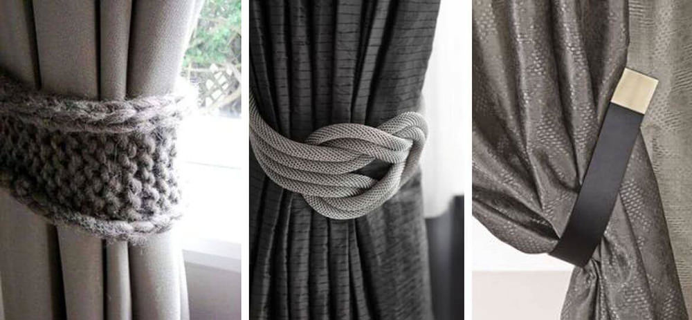 Pickups can be of the same material as the curtains, or in harmony with decorative elements of a different color.