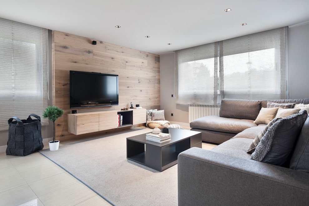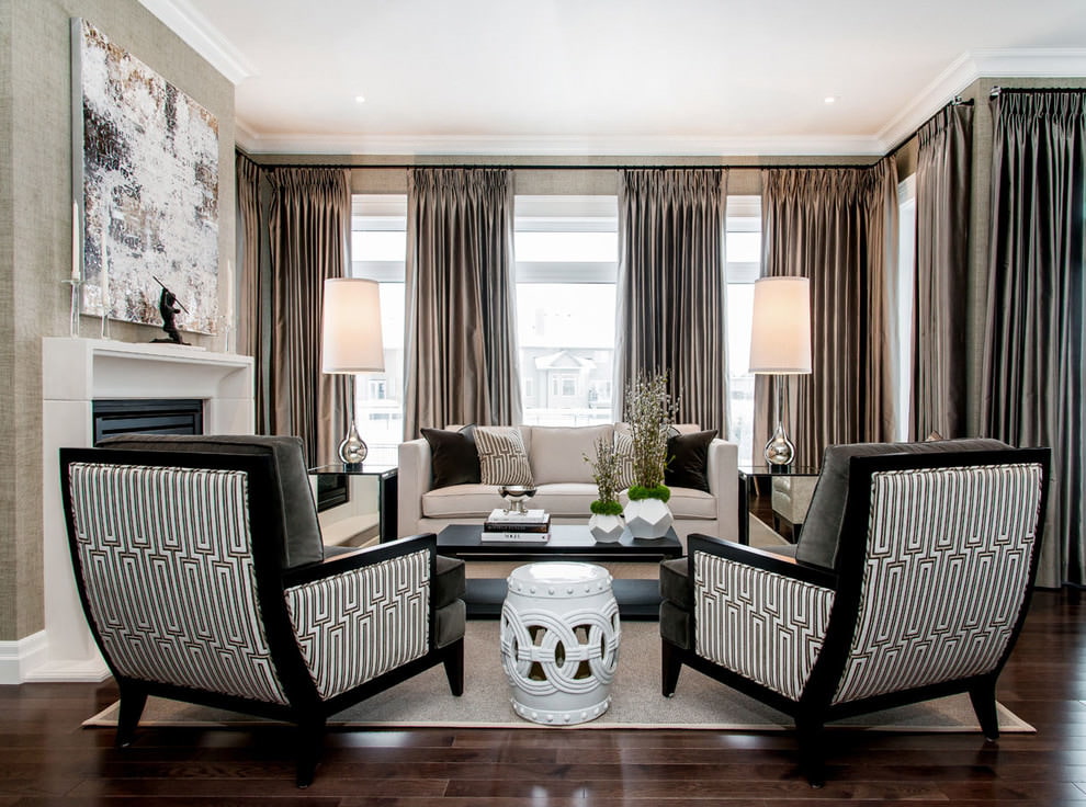 The choice of style and material of curtains depends on the style of the living room. Gray curtains can set off bright decorative elements or, on the contrary, emphasize a single color scheme.