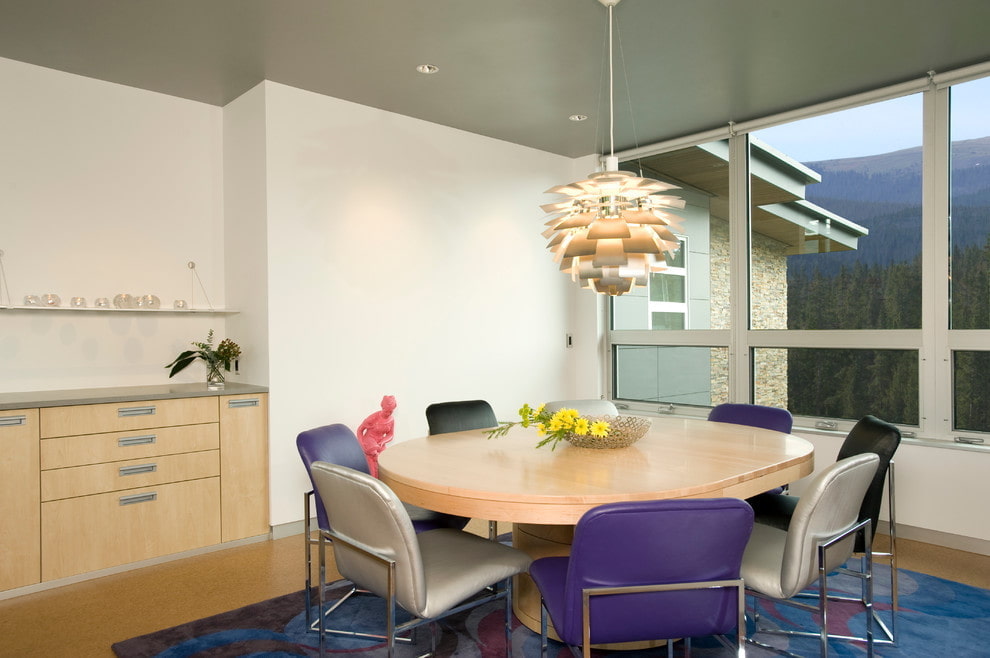 Various lamps give the ceiling a complete look and emphasize all the advantages of the interior.