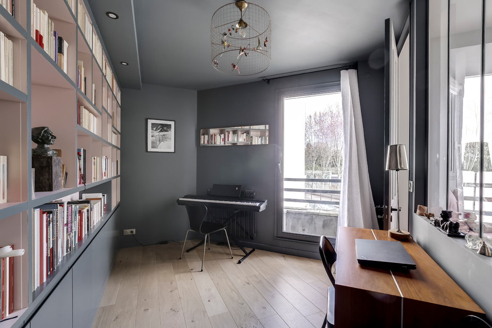 - Too dark gray colors can be set off with lighter elements, such as white skirting boards or a baguette.