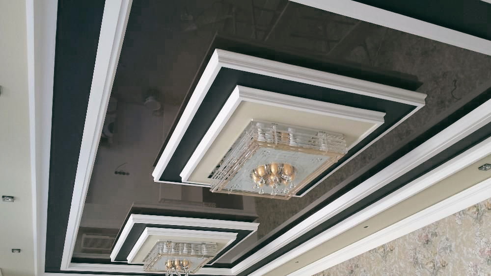 Quite a popular and familiar type of ceiling decoration, which gives the interior a complete look and forms a harmonious atmosphere.