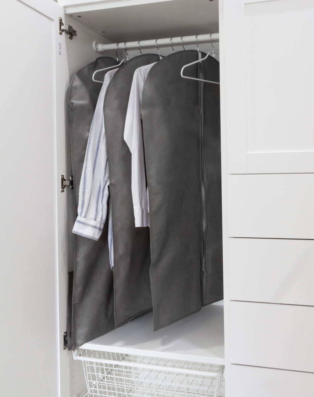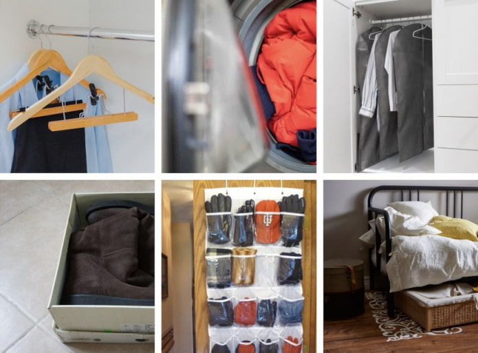 When there are more seasonal items than storage space, you need to use every possible option to unload the cabinets and hanger in the hallway. Tracksuits made from crease-resistant fabric can be stowed in bulky boxes or trunks.
