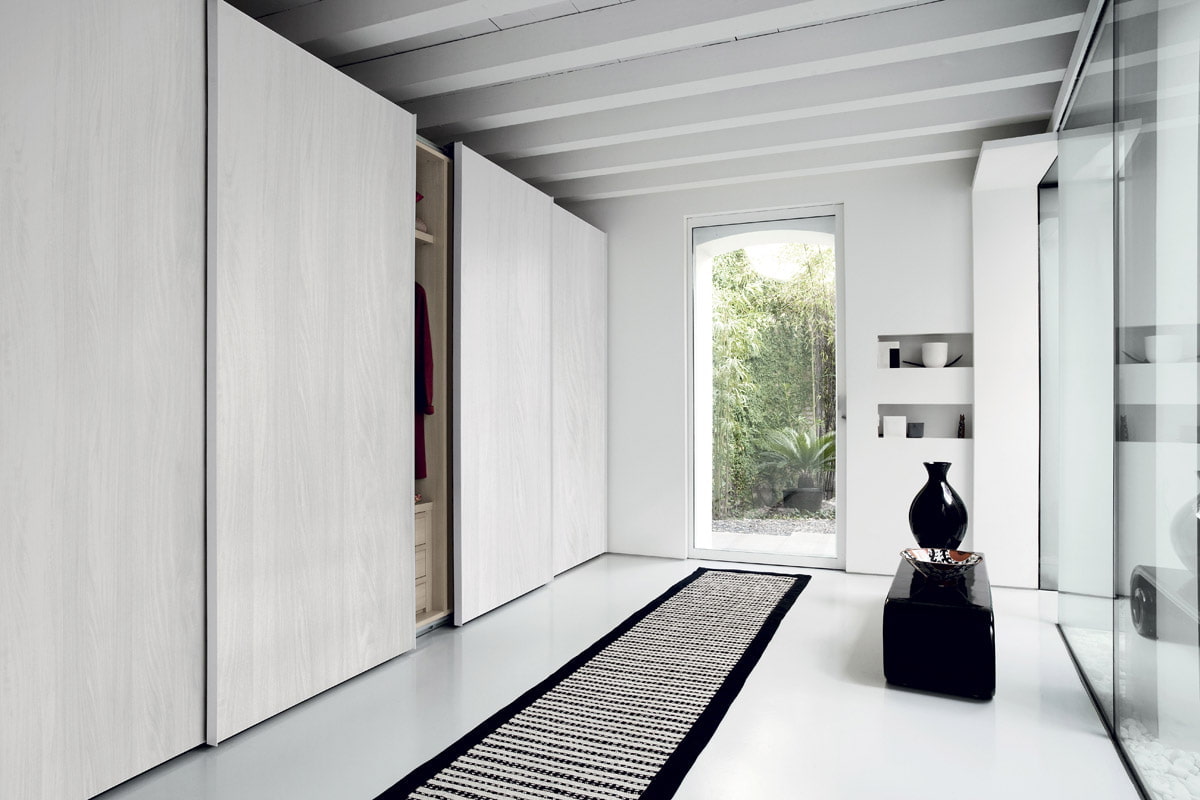 - A wardrobe with sliding doors fits perfectly into both small and longcorridor... Thanks to the built-in structure, the doors of which, when opened, do not take up extra space, it turns out to save useful meters in the hallway.