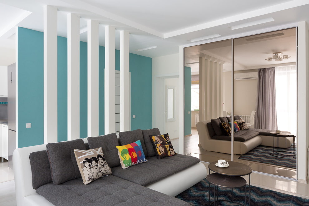 The sliding wardrobe allows you to solve several problems at the same time. It can become the main decoration of the design, acting as a harmonious part of the overall furniture set or as an independent central element.