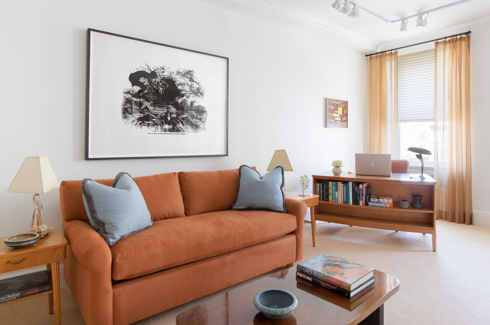 This color is a great base for other richer, more vibrant hues. In addition, the palette of beige in milky, cappuccino, ecru and caramel shades makes it possible to use it in monochrome design. Designers use this method to achieve the effect of calmness and softness in the interior.